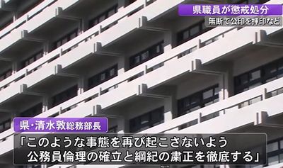 清水敦総務部長は「誠に申し訳なく、県民の皆様に深くお詫び申し上げます。公務員倫理の確立と綱紀の粛正について改めて職員に徹底してまいります」とコメント