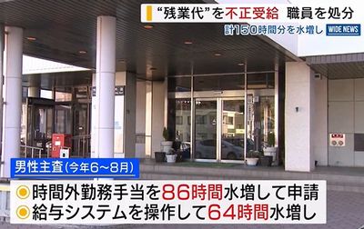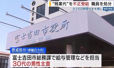 富士吉田市によりますと、総務課に勤務する30代の男性主査はことし6~8月支給分の時間外勤務手当について、所属課への申請を86時間水増しして申請した上、給与システムを不正に操作して、6月と8月分の時間外勤務手当をさらに64時間水増しした。