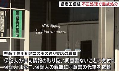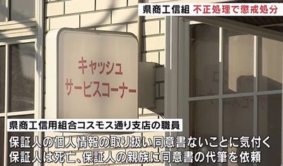 福島県郡山市の福島県商工信用組合の支店で職員が、貸付の保証人に関連する書類を後から代筆させていたことがわかり、懲戒処分を行っていた。