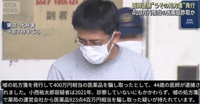 虚偽の処方箋を書いて薬局から高額な医薬品をだまし取ったとして、警視庁麹町署は10月1日、東京都渋谷区の医師、小西悠太郎容疑者(44)を詐欺容疑で逮捕したと発表。実際の診断に基づかない処方箋を患者に無断で作り、処方された薬を自ら受け取って転売していた容疑。