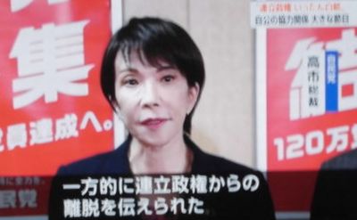 20日から22日ごろに予定されるであろう臨時国会で、高石氏が比較第一党で総理に選出されたとしても、連立を組む相手が簡単に出来るのかは分からない。