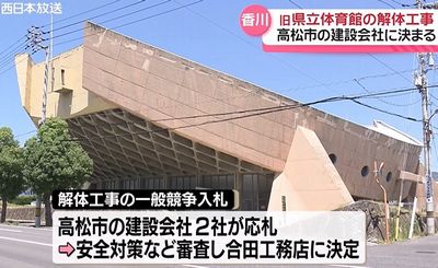 県は「旧香川県立体育館解体工事」を総合評価一般入札した結果、8億4700万円(税込み、以下同)で同社に決めた。