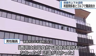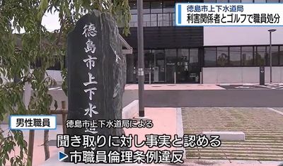 徳島市上下水道局は10月17日、利害関係者とゴルフをしたとして、課長補佐級の50代の男性職員を「戒告」の懲戒処分とした。