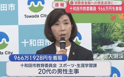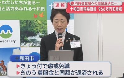 青森県の十和田市教育委員会は11月26日、市教委の20代男性主事が、スポーツ大会の資金など併せて準公金約966万円を着服したとして、同日付で懲戒免職処分にしたと発表した。