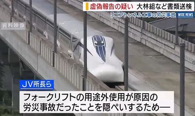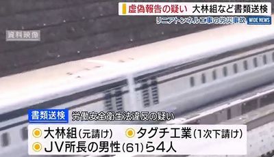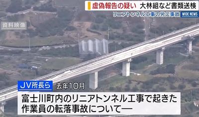 山梨県富士川町のリニア中央新幹線のトンネル工事現場で起きた転落事故原因について虚偽説明をしたとして、鰍沢労働基準監督署は12月5日、工事を請け負っていたゼネコン大手の大林組など共同企業体(JV)の所長(61)ら4人をを労働安全衛生法違反の疑いで書類送検した。