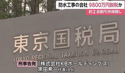 12月9日、法人税約7100万円を脱税したなどとして、東京国税局が防水工事会社「KBホールディングス」(千葉市稲毛区)と同社の社長(49)を法人税法違反と消費税法違反の容疑で千葉地検に告発していた。