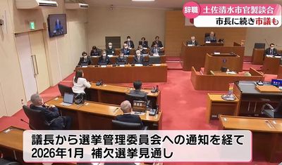 官製談合などの疑いで逮捕された程岡容疑者の辞職が12月1日に開会した土佐清水市議会で全会一致で同意された。