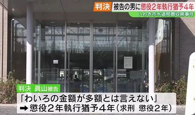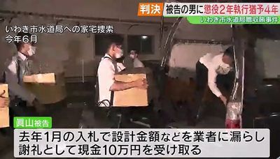 判決を言い渡されたのは、いわき市水道局元職員・眞山佳幸被告(35)。判決によると、眞山被告は、2024年1月の水道局発注の工事の入札をめぐり、設計金額などを業者に漏らし、謝礼として現金10万円を受け取った。