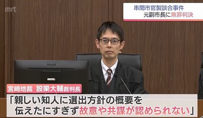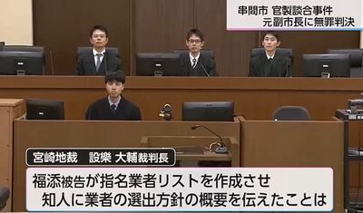 2023年4月、串間市が発注した消防庁舎新築工事の設計業務委託を巡る官製談合事件で、宮崎地裁は元副市長に無罪判決を言い渡した。