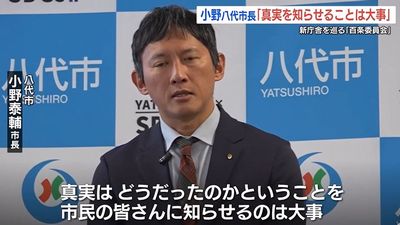 八代市の小野泰輔市長は、自身の就任前に行われた庁舎の建設工事をめぐり、市議会に設置された百条委員会について、「真実を市民に伝えることは大事」とし「新庁舎建設に関して色んな疑念を持たれている。それを明らかにしたいという議会の意思だと思う」述べました。