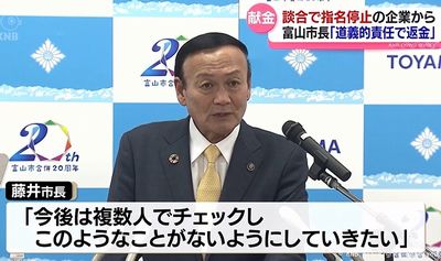 富山市の藤井市長が代表を務める自民党の支部が、2024年、談合事件に関与して市から指名停止処分を受けた会社から、10万円の献金を受け取っていたことが判明。