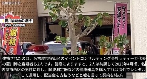 守山区にあるコンサルティング会社「ラティーナ」代表の菱川博行容疑者(61)は、「脳波測定器を購入すれば運用して配当金を渡す」などとウソを言い、レンタル業を営む戸田洋輔容疑者(41)とともに、西区に住む男性(47)から現金341万円をだまし取った疑いで、14日朝、送検されました。