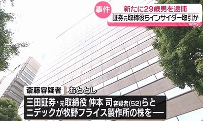 インサイダー取引をした疑いなどで「三田証券」の元幹部ら6人が逮捕された事件で、東京地検特捜部は2月10日、新たに男1人を逮捕しました。