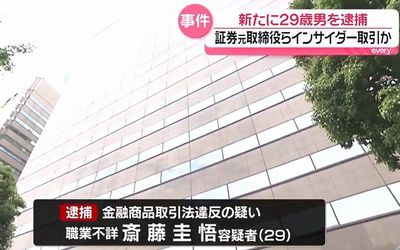モーター大手「ニデック」による工作機械大手「牧野フライス製作所」へのTOB(株式公開買い付け)を巡るインサイダー取引事件で、東京地検特捜部は2月7日、金融商品取引法違反容疑で、住居、職業不詳の斎藤圭悟容疑者(29)を新たに逮捕した。逮捕者は6人目。認否を明らかにしていない。