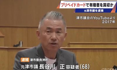 逮捕されたのは、元津市議で建設業の長谷川正容疑者(68)は、市議選告示前の2025年12月から2026年1月にかけて、有権者4人に1000円分のプリペイドカードあわせて7枚を配り、投票を依頼した買収と事前運動の疑いが持たれている。