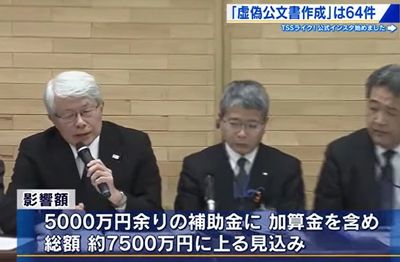影響額は、5000万円あまりの補助金に加算金を含め総額およそ7500万円に上る見込みで、今後国に対して県の財源から支払う可能性があるという。