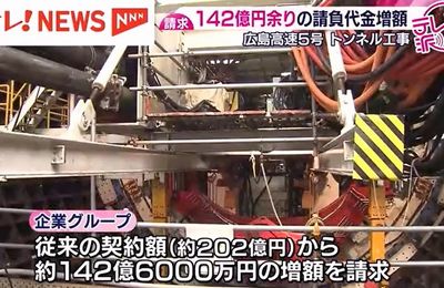 広島高速5号線のトンネル工事で、受注した大林組JVが142億円余りの請負代金の増額を請求していることが明らかになった。
