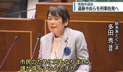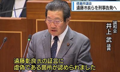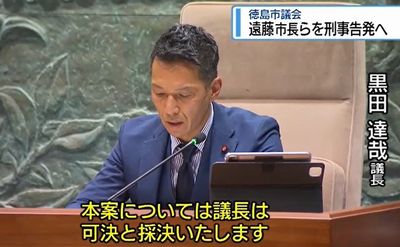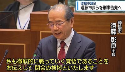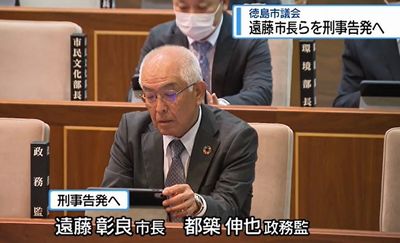 徳島市議会は3月24日、市の百条委員会で虚偽の証言をしたとして、遠藤彰良市長と都築伸也政務監を刑事告発することを決めた。