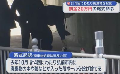 弘前簡裁は12日付で罰金20万円の略式命令を出した。