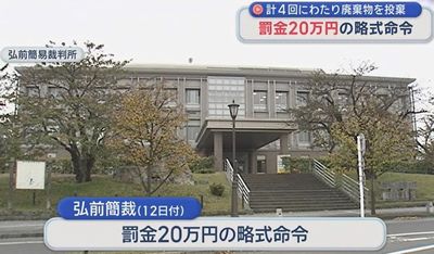 弘前簡易裁判所は廃棄物処理法違反の罪で市内の76歳の男に罰金20万円の略式命令を出した。