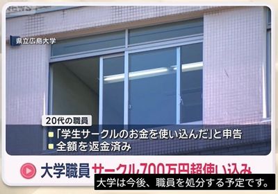 県立広島大職員:学生サークルの現金714万円・私的流用!