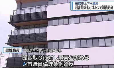 徳島市上下水道局は10月17日、利害関係者とゴルフをしたとして、課長補佐級の50代の男性職員を「戒告」の懲戒処分とした。