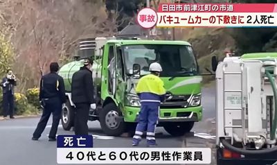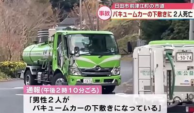 大分県日田市の市道で12月1日午後、男性2人がバキュームカーの下敷きになっているのが見つかり、2人が死亡した。