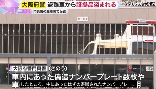 大阪府警は12月2日、門真署(大阪府門真市)の公用駐車場で保管していた盗難車の中から、偽造ナンバープレートなどが盗まれたと発表した。