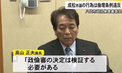 八代市議会議員2人を対象に2025年10月に設置された八代市の政治倫理審査会が報告書をまとめ成松由紀夫市議については条例に違反する行為があったと判断した。