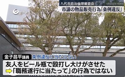 報告書では市民をビール瓶で殴りけがを負わせた金子昌平市議の行為は、職務とは関係がないなどとして条例違反に当たらないと結論付けた。金子市議は「友人との私的な場で偶発的に生じたもの」「円満に解決している」と反論していた。