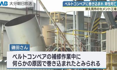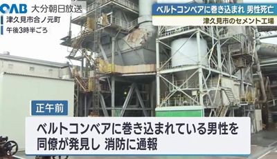 亡くなったのは、津久見市セメント町の会社員・磯田拓真さん(21)。25日正午前、津久見市合ノ元町の太平洋セメントの工場内で、磯田さんがベルトコンベアを補修していたところ、左腕を巻き込まれた。