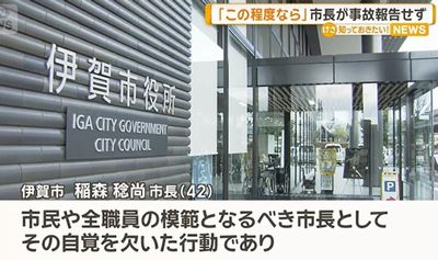 市によると、三重県伊賀市の稲森稔尚市長(42)は、2月15日に市内でで開かれるセレモニーに向かう途中、車を運転していた際、ハンドル操作を誤って道路脇のガードレールに接触する物損事故を起こしたが、警察に報告をしなかった。