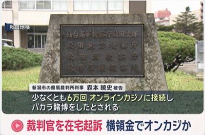 新潟市の簡易裁判所判事の森本暁史被告は2023年、スマートフォンなどで少なくとも6万回、オンラインカジノサイトに接続し、バカラ賭博をした。