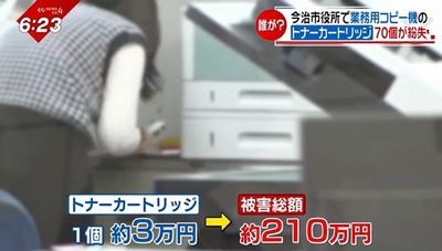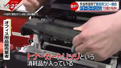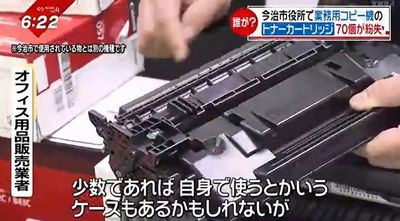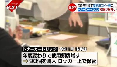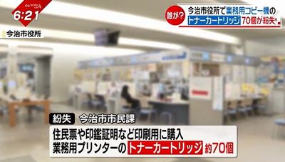 庁内で使用できるのは、市民課に設置されている業務用プリンターだけという、特殊なトナーカートリッジ。市は盗まれた可能性があるとして、21日警察に被害届を提出した。