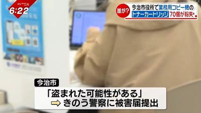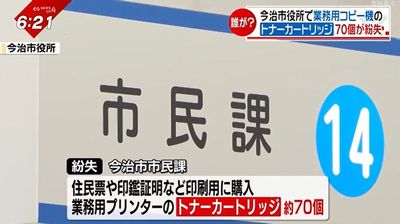 紛失したのは、今治市の市民課が住民票や印鑑証明などの印刷用に購入した業務用プリンターのトナーカートリッジおよそ70個です。