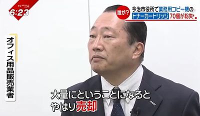 「これが(コピー機)本体で、この中に、こういった形でトナーカートリッジという消耗品が入っている。これが実際のトナーカートリッジ。これがないと印刷ができない。まさしく心臓でエンジンの部分。少数であれば、自身で使うとかいうケースもあるかもしれないが、大量にということになると、やはり「売却」。今頃、ネットで販売するとか 色んなショップで買い取りをしたりとかということもあり得るかもしれない」