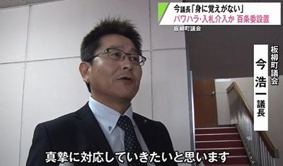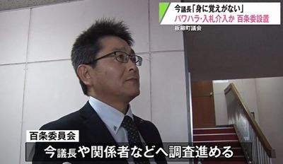 青森県板柳町議会は今浩一議長に対し、町職員へのパワーハラスメントや公共工事の入札に介入した疑いを調査する百条委員会の設置案を可決した。