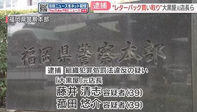 組織犯罪処罰法違反の疑いで逮捕されたのは、いずれも中古品販売・買い取り業者「大黒屋」で犯罪収益で購入されたレターパックと知りながら買い取ったとして、福岡県警は2月25日、組織犯罪処罰法違反(犯罪収益収受)の疑いで同県篠栗町津波黒1丁目、会社役員藤井清志容疑者(39)と福岡市西区姪浜駅南4丁目、会社員菰田悠介容疑者(39)を逮捕した。