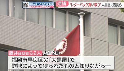 詐欺行為で得られたレターパック1100枚余りを買い取ったとして、中古品の販売・買い取り業者「大黒屋」の元店長2人が逮捕された。