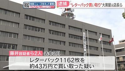 2人は共謀して去年2月、福岡市早良区の大黒屋の店舗で、詐欺によって得られたものと知りながら、レターパック1162枚をおよそ43万円で買い取った疑いです。