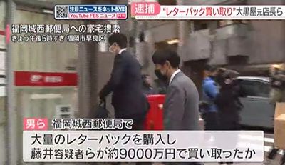 警察によりますと、男らが大量にレターパックを購入したのは福岡市の福岡城西郵便局で、これらのレターパックを藤井容疑者と菰田容疑者がおよそ9000万円で買い取っていたという。