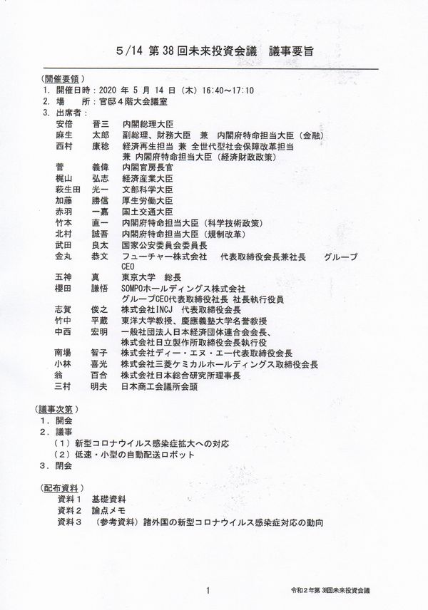 経済とコロナ対策が一体となった会議は、未来投資会議(第1回は平成28年9月12日)の第37回(令和2年4月3日)と第38回(5月14日)会議からである。
