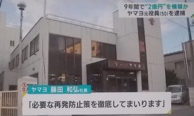 10月31日、八戸市の水産加工会社「ヤマヨ」の元役員が、業務上横領の疑いで逮捕された。被害総額は9年間で2億円にのぼる見込み。