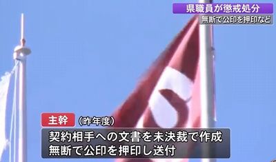 さらに契約相手への文書を未決裁で作成し、無断で公印を押印し送付した。