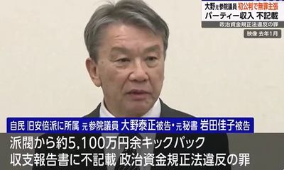 自民党派閥の政治資金パーティー裏金事件で、清和政策研究会(旧安倍派)から受領した約5100万円を政治資金収支報告書に記載しなかったとして、政治資金規正法違反(虚偽記載)に問われた元参院議員、大野泰正被告(66)は9月10日、東京地裁の初公判で起訴内容を否認した。