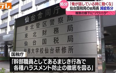 「俺が話している時に動くな」5人以上の部下に長時間叱責などパワハラか仙台国税局の前局長に減給の懲戒処分。局長のパワハラ行為での処分は国税庁で初めて。