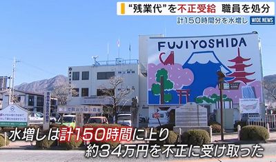 時間外勤務手当てを水増し申請するなどして、約34万円を不正に受給したとして、富士吉田市は30代の男性主査を停職6カ月の懲戒処分とした。
