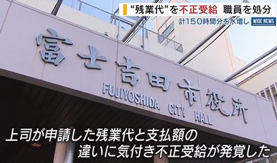 富士吉田市によりますと、総務課に勤務する30代の男性主査はことし6~8月支給分の時間外勤務手当について、所属課への申請を86時間水増しして申請した上、給与システムを不正に操作して、6月と8月分の時間外勤務手当をさらに64時間水増しした。