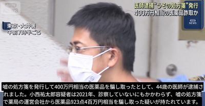虚偽の処方箋を書いて薬局から高額な医薬品をだまし取ったとして、警視庁麹町署は10月1日、東京都渋谷区の医師、小西悠太郎容疑者(44)を詐欺容疑で逮捕したと発表。実際の診断に基づかない処方箋を患者に無断で作り、処方された薬を自ら受け取って転売していた容疑。