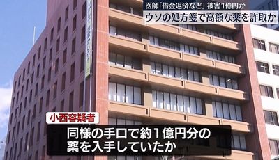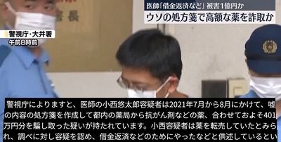 小西容疑者にかかっていた複数の患者から「身に覚えのない薬の処方記録が載った医療費通知を受け取った」という連絡を受け、医療制度を運営する都後期高齢者医療広域連合が警視庁に相談して発覚した。21年7~8月だけで、1億円相当の医薬品を不正に得ていた。